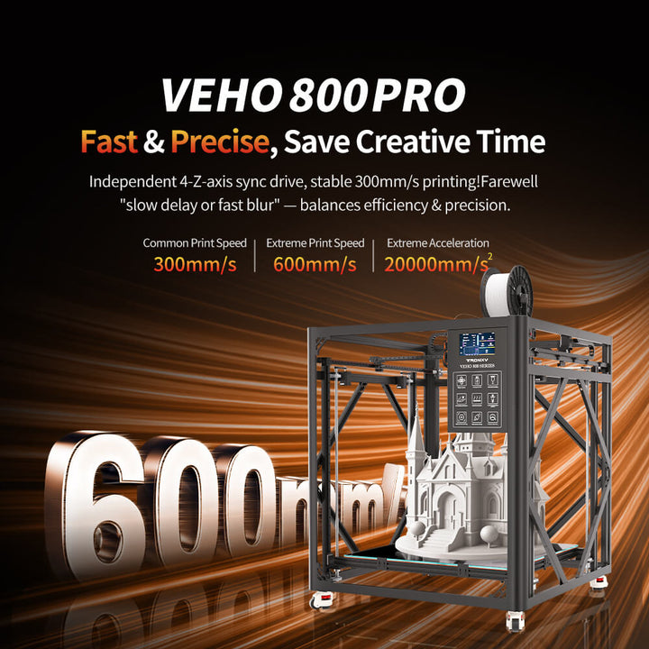 สัมผัสประสบการณ์การพิมพ์สุดเร็วสุดขีดด้วย Tronxy Veho 800 Pro! พิมพ์ได้เร็วถึง 600 มม./วินาที, เครื่องพิมพ์ 3 มิตินี้ช่วยให้คุณทำงานโครงการต่างๆ เสร็จได้อย่างรวดเร็วโดยไม่กระทบต่อคุณภาพการพิมพ์. ไม่ว่าจะทำงานบนต้นแบบหรือโมเดลรายละเอียด, ความเร็วนี้จะต้องสร้างความประทับใจให้กับผู้สร้างที่จำกัดเวลาอย่างแน่นอน.
