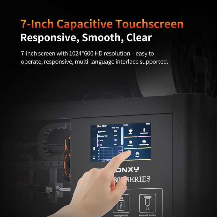 ● หน้าจอสัมผัส MIPI แบบเต็มสีขนาด 7 นิ้ว (1024*600): จอแสดงผล MIPI ขนาด 7 นิ้ว ความละเอียด HD 1024x600 ดูพารามิเตอร์ได้อย่างชัดเจนด้วยการควบคุมแบบสัมผัสที่ง่ายดาย ● ปริมาณการพิมพ์ขนาดใหญ่: ขนาด 800*800*800 มม. ● การพิมพ์ความเร็วสูง: ความเร็วสูงสุด 600 มม./วินาที ● สลับระหว่าง Wi-Fi &แอมป์; อีเธอร์เน็ต: เครือข่ายคู่, มั่นคง & ไม่หยุดชะงัก ● พื้นที่เก็บข้อมูล 32GB: พื้นที่เก็บข้อมูลเพียงพอสำหรับการสร้างสรรค์ที่ไม่หยุดชะงัก ● มาพร้อมกับ Klipper: การโต้ตอบอัจฉริยะ, ความยืดหยุ่นสำหรับสถานการณ์หลายสถานการณ์